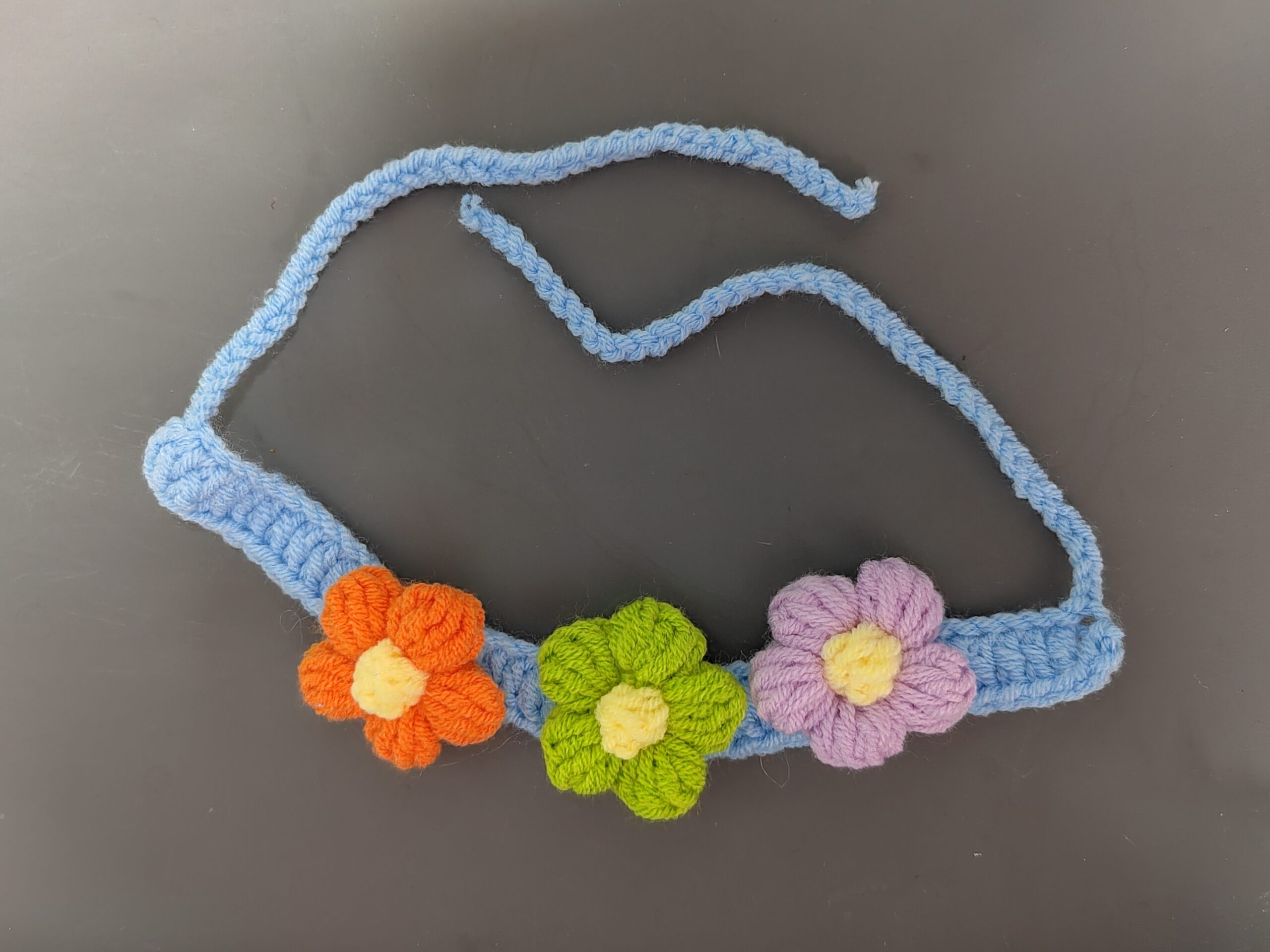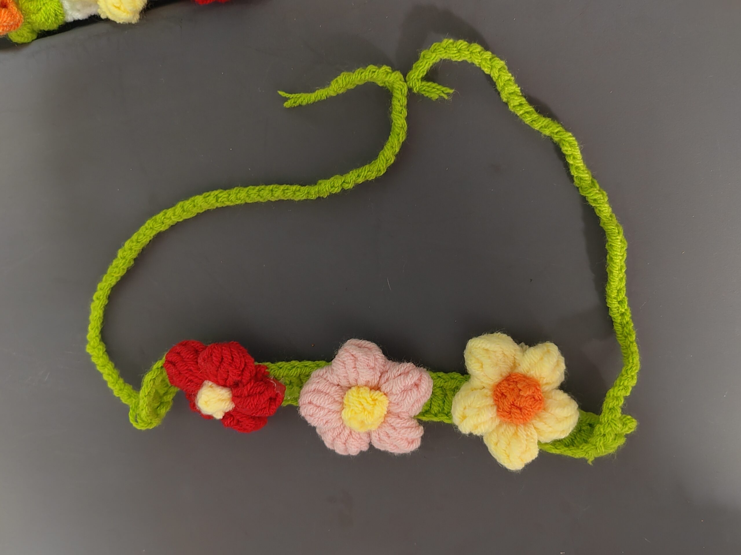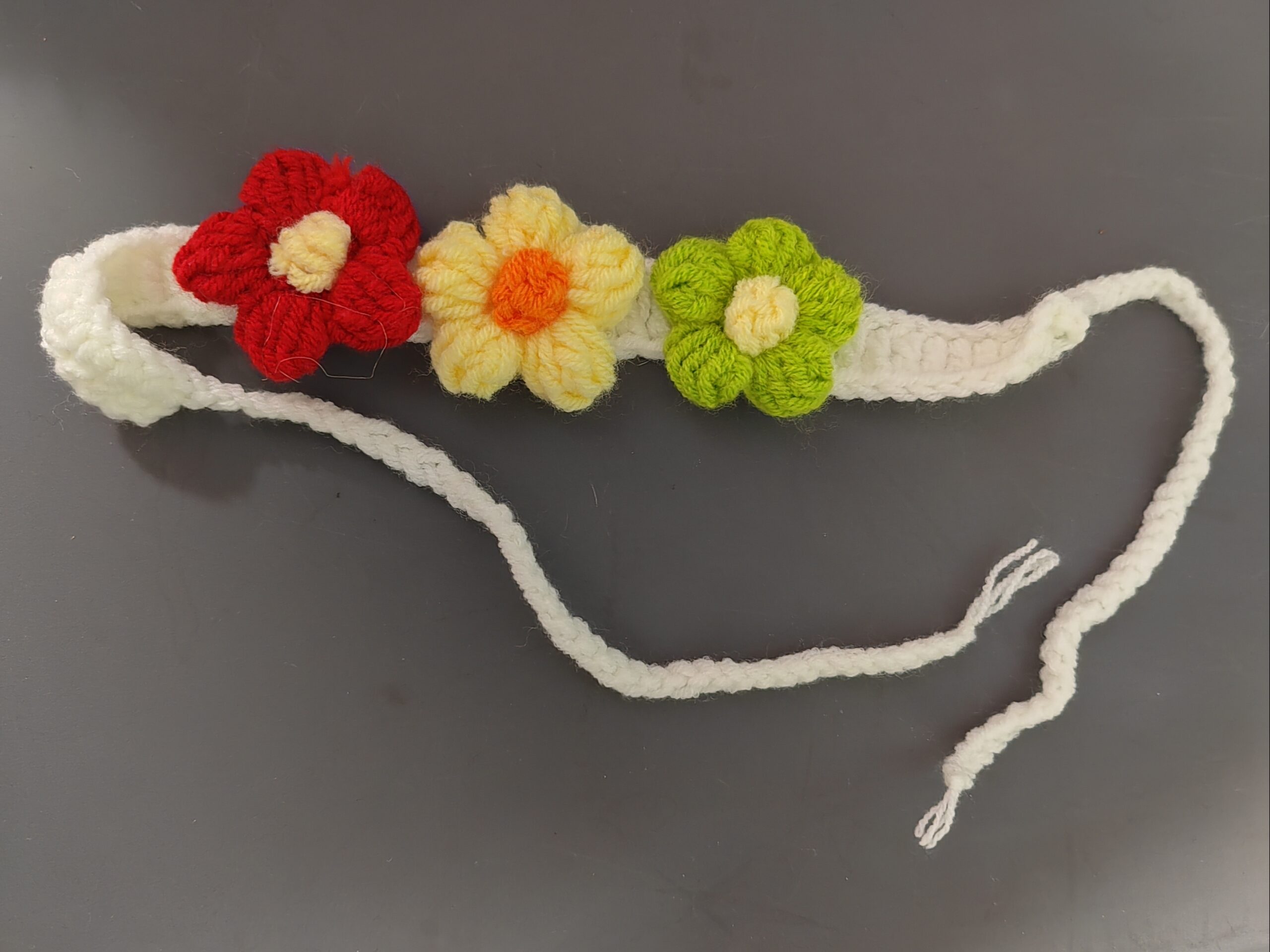 Free size:The crocheted flower section in the middle is 20 cm, with ties on each side measuring 20 cm.